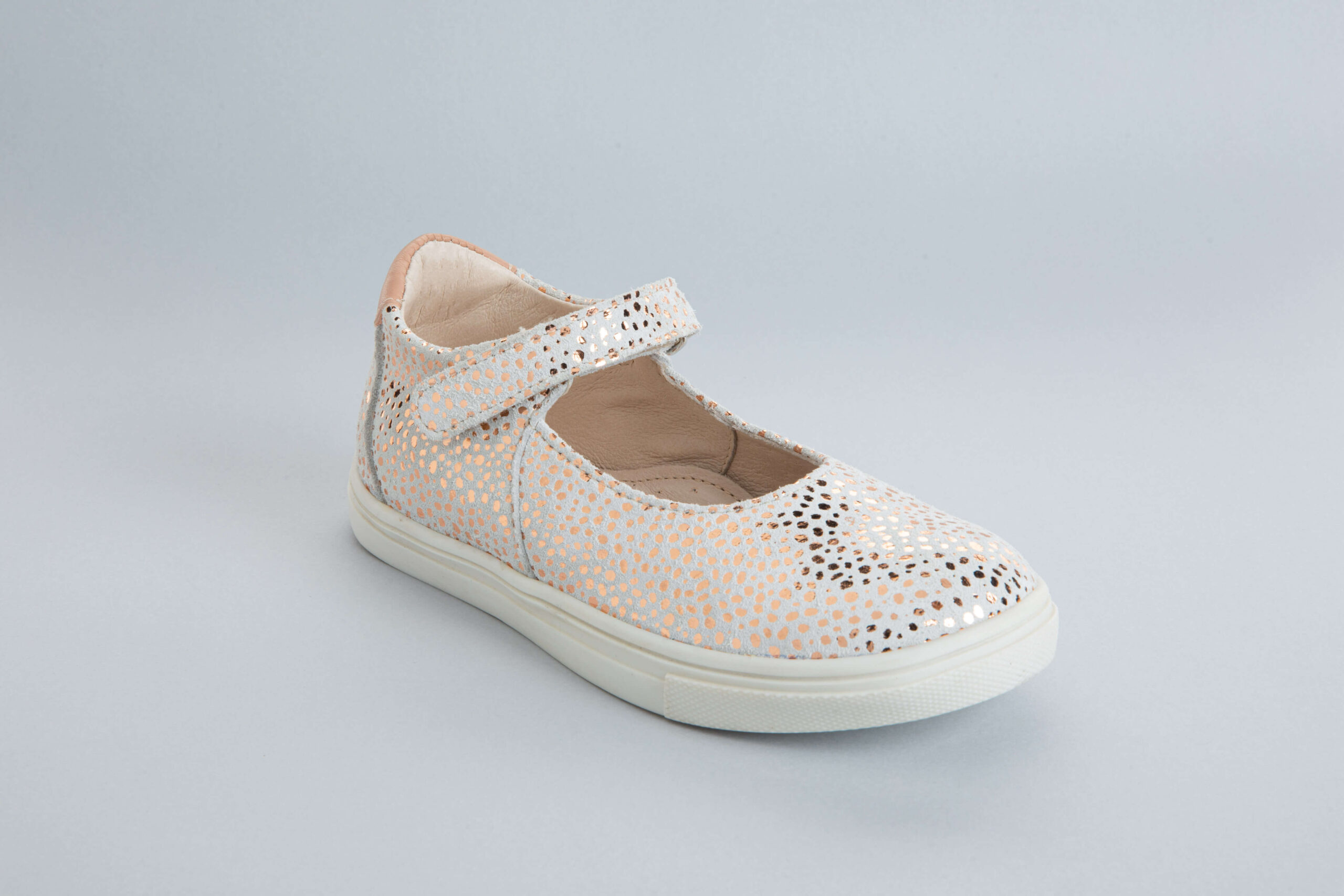 Les fillettes vont se chausser en toute autonomie avec ces babies en cuir blanc ornées de pois or et leur velcro à la cheville. Plus besoin de faire un choix pour complèter sa tenue habillée.