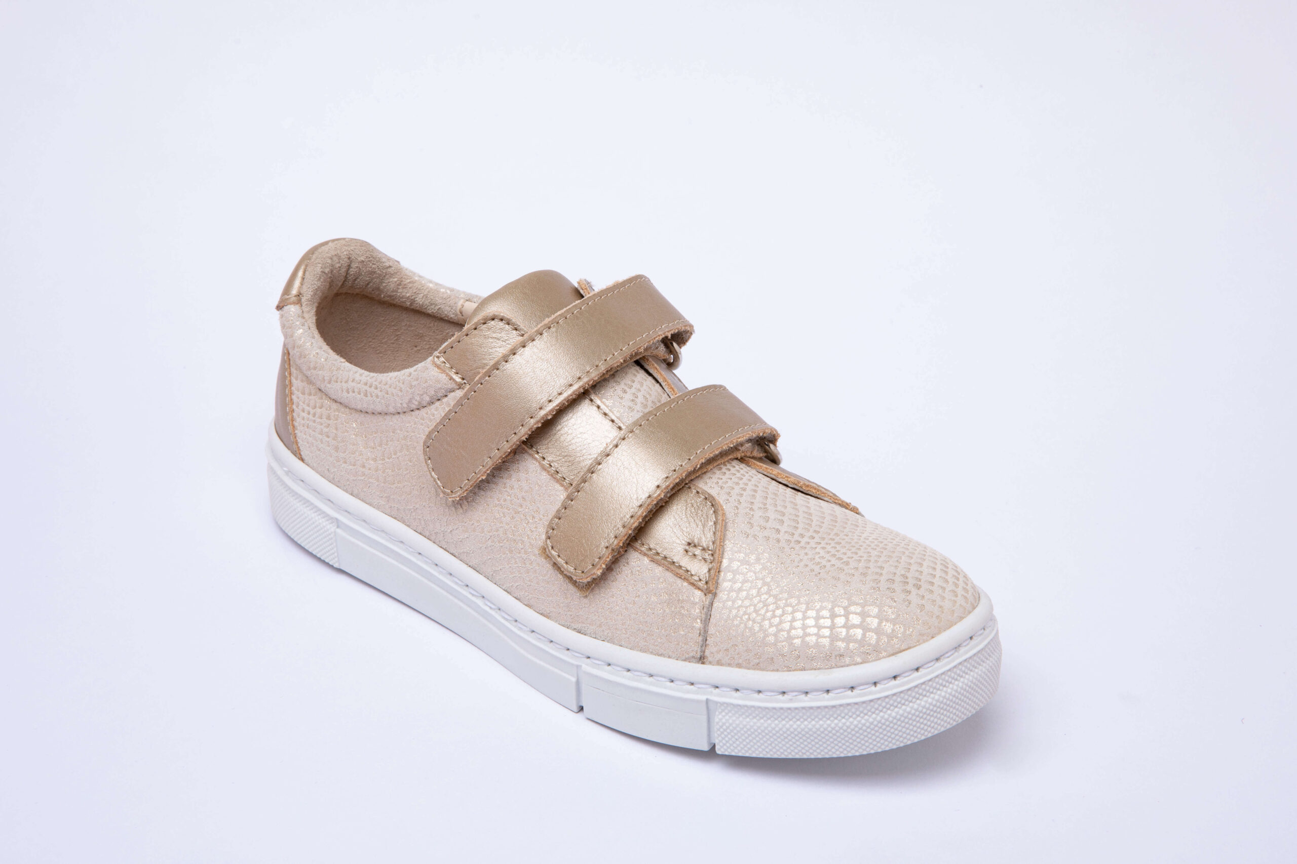 Baskets en cuir irisé à scratch beiges brillantes, la paire parfaite pour des sorties chics et décontractées. Faciles à enfiler et à retirer, elles sont indispensables au quotidien, par temps chaud et printanier. C’est le Must-Have à adopter !