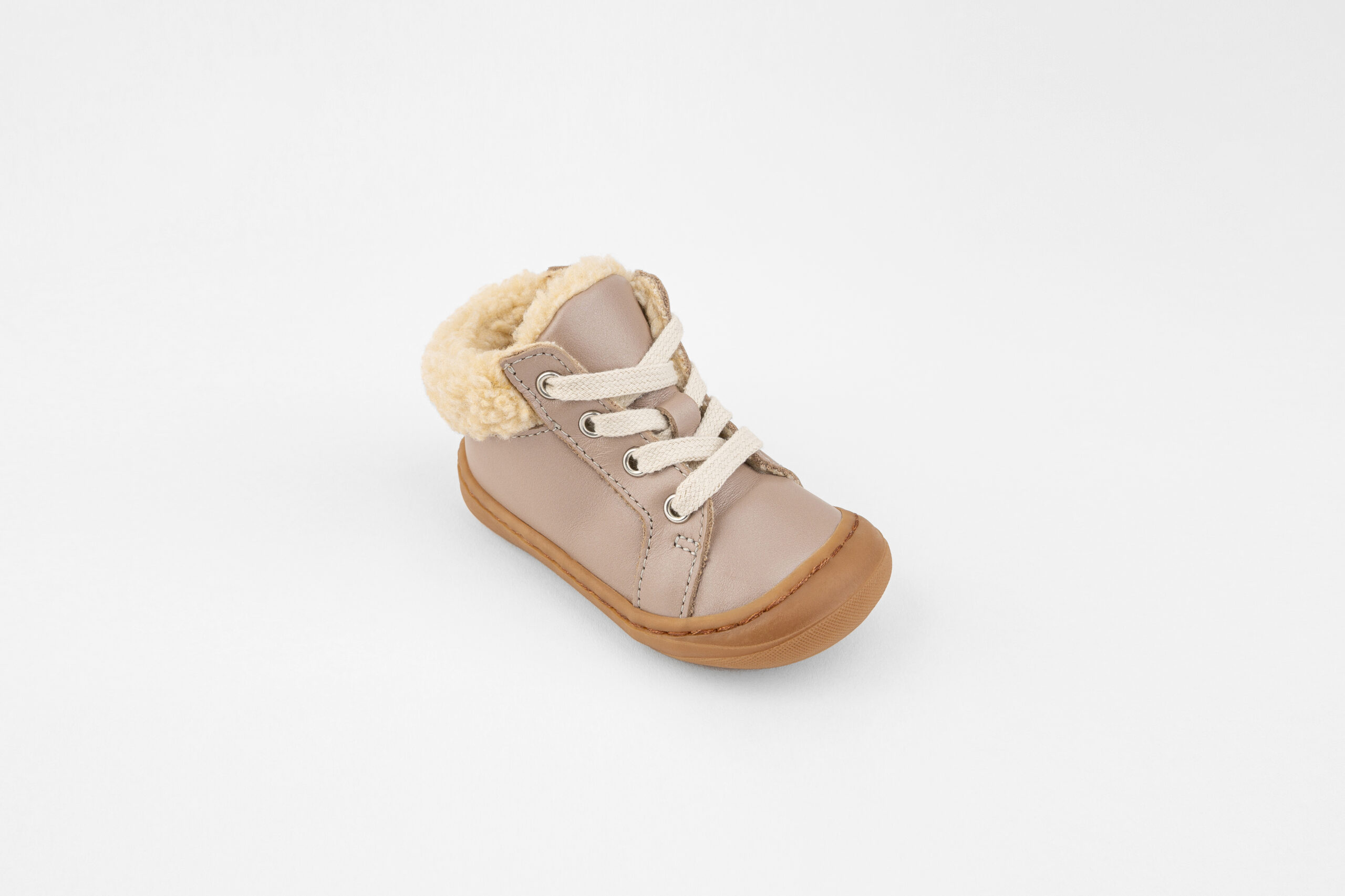 Confectionnées en cuir souple avec des reflets nacrés subtils, ces baskets spéciales premiers pas sont dotées d’une doublure fourrée pour une chaleur optimale des petits pieds de bébé, et d’une semelle en caoutchouc pour garantir la stabilité et la sécurité. Un duo parfait d’élégance et de praticité pour les tout-petits.