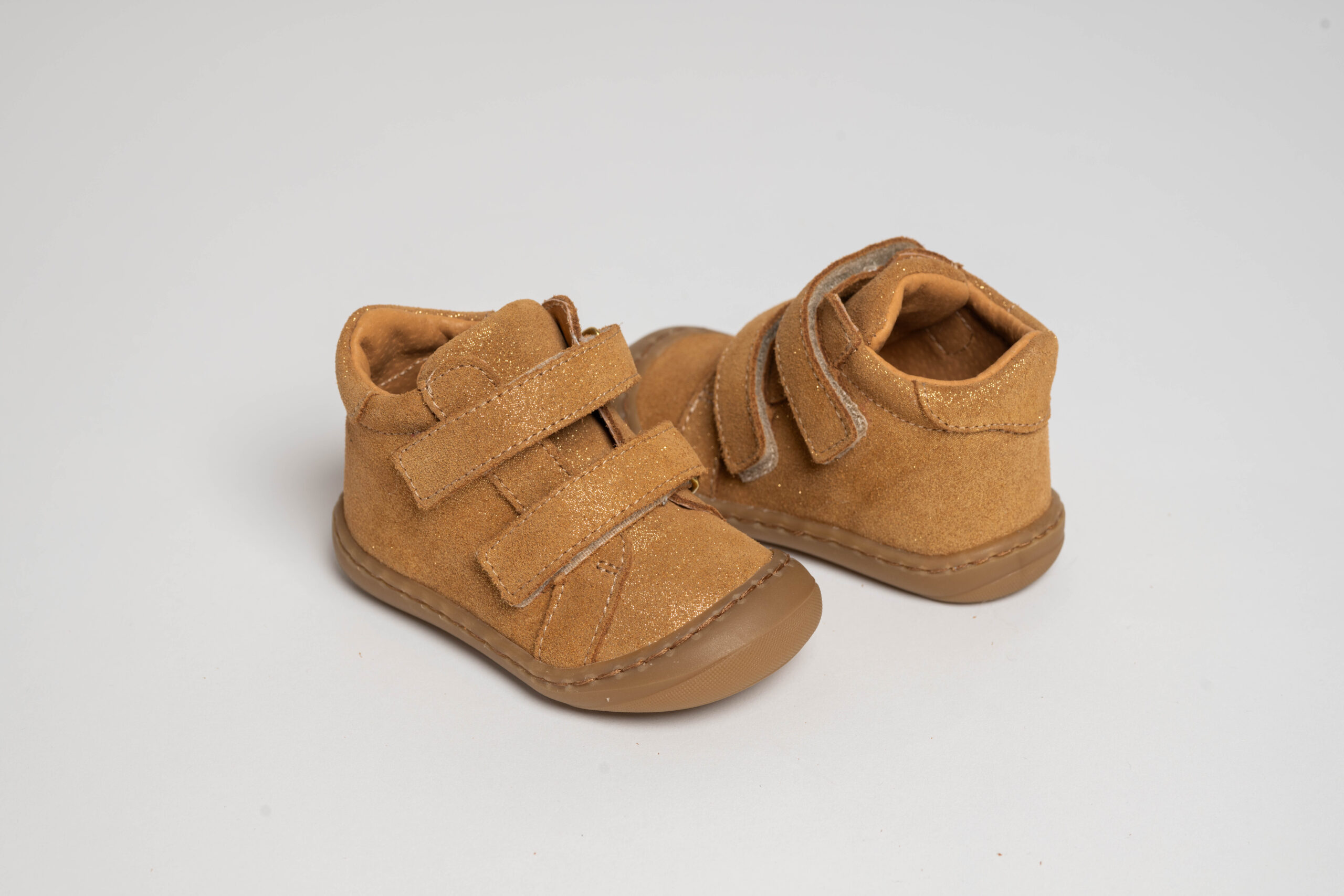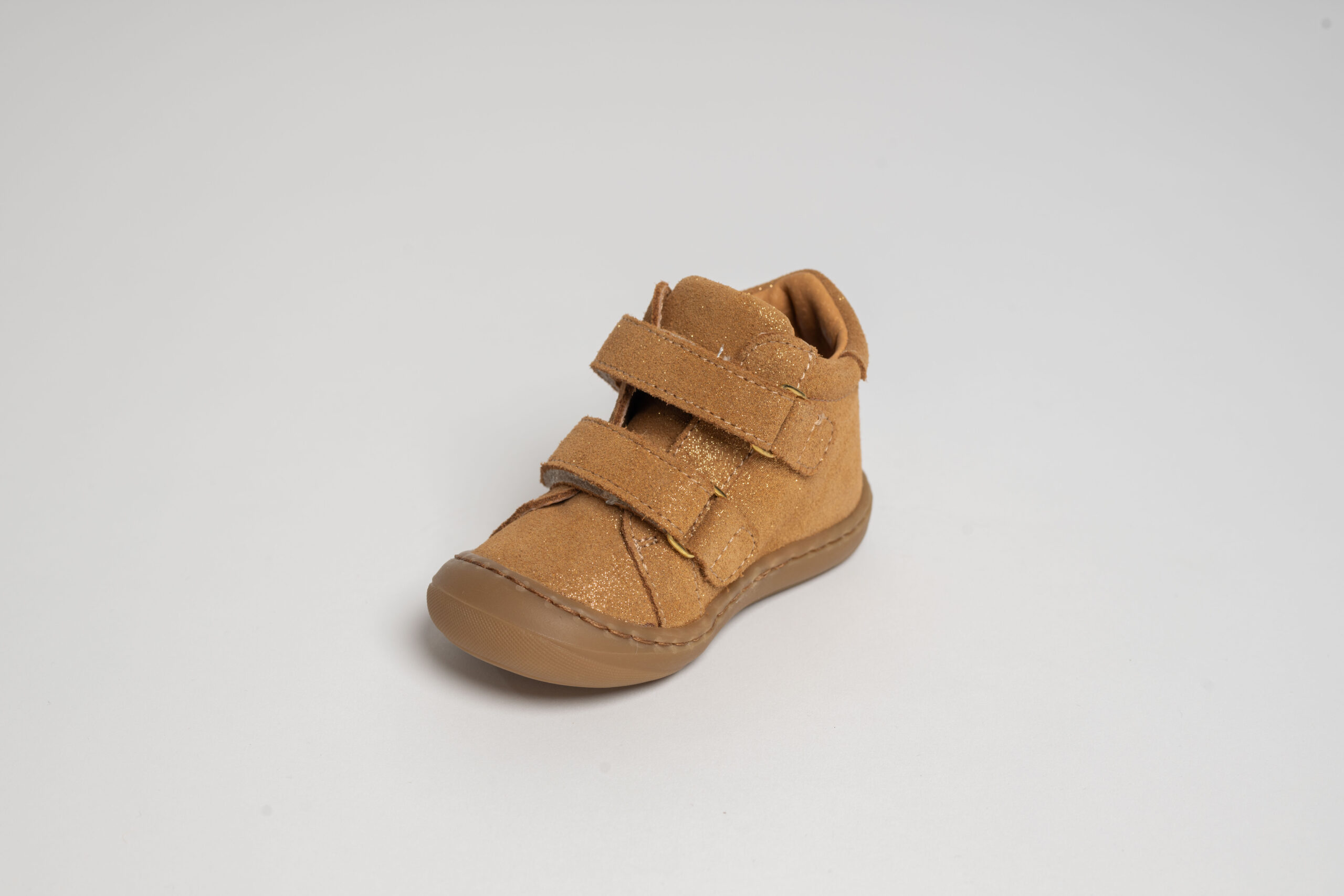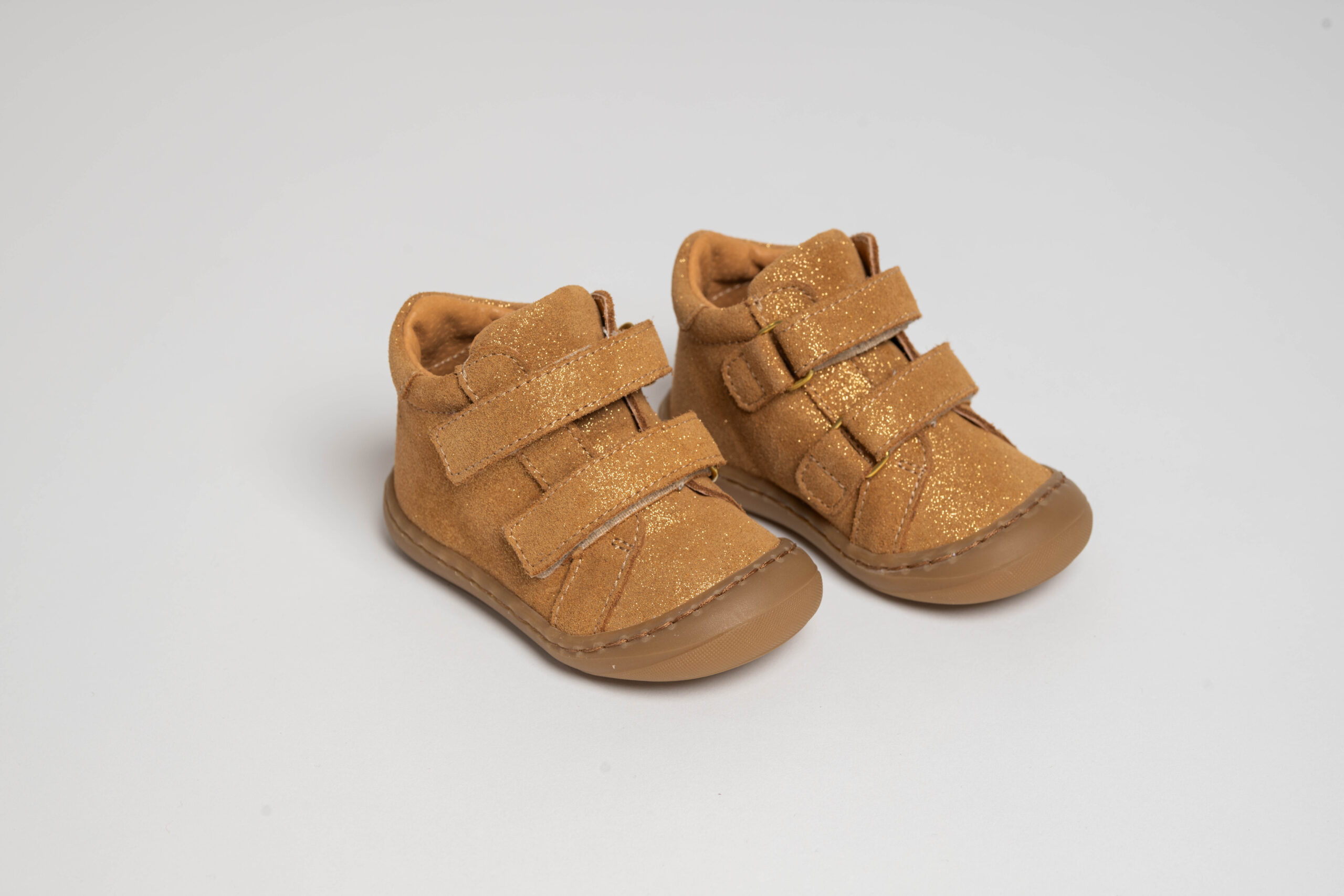 Conçues pour les premiers pas des bébés filles, ces chaussures allient confort, souplesse et maintien.Réalisées en cuir 100 % naturel, elles sont dotées de semelles importées adaptées aux premiers pas, pour accompagner le développement naturel du pied.La forme montante assure un bon maintien de la cheville, tandis que les doubles scratchs facilitent l’enfilage et l’ajustement.Leur teinte camel irisée apporte une touche douce et lumineuse au quotidien.