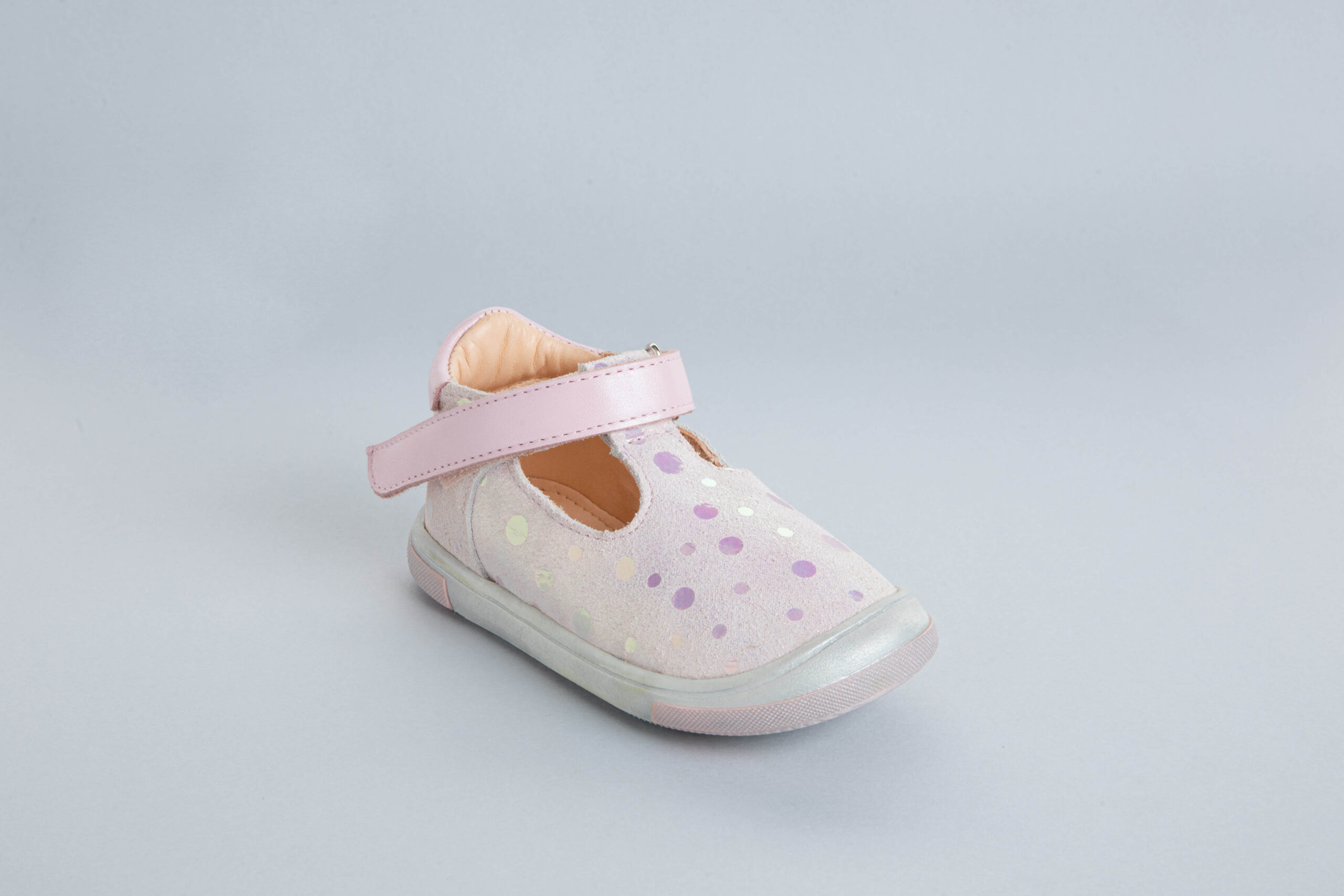 Babies en cuir brillant de couleur rose lilas conçues pour accompagner les petites lors de l’apprentissage de la marche et durant les moments de jeu et de déplacements. Un modèle sport chic qui allie finesse et confort.
