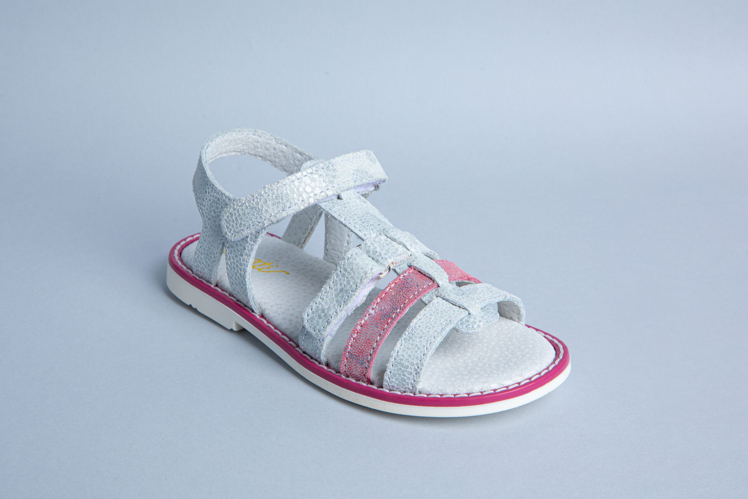 -50% Sandales fille en cuir blanc argenté